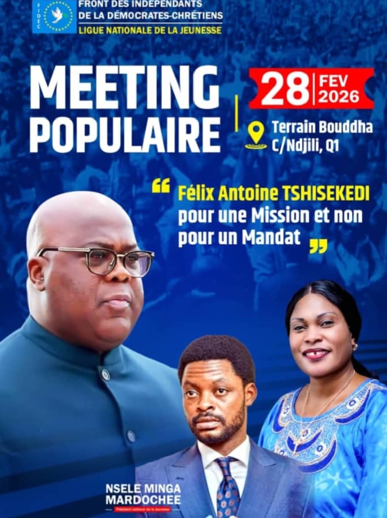 « Au delà de 2028, Félix Tshisekedi va continuer avec sa mission jusqu’au jour où on sera sûr que le Rwanda ne balcanisera pas notre pays, qu’il n’y aura plus brassage, mixage ou infiltration rwandaise », a déclaré Mardochée Nsele Minga, président de la ligue des jeunes du Front des indépendants pour la démocratie chrétienne (FIDEC), lors d’un Meeting politique organisé samedi au Terrain Budha à Ndjili.